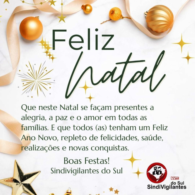 ![]() | 24 de Dezembro de 2025 BOAS FESTAS! Nossa saudação de Feliz Natal e Feliz Ano Novo a toda a categoria. Veja mensagem do presidente José Airton Trindade. |