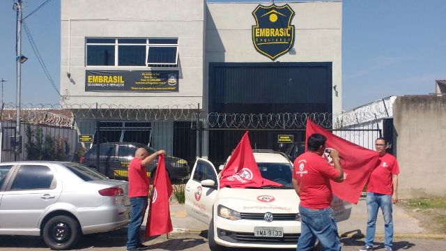Uma equipe do sindicato foi às ruas hoje protestar contra atrasos de salários em algumas empresas. Já é 12 de setembro e muitos trabalhadores da Embrasil, Laboral e Código ainda não receberam. Pela manhã, uma viatura com equipamento de som do Sindivigilantes do Sul estacionou na frente da primeira e os diretores que foram até lá fizeram uma manifestação pública, exigindo o pagamento imediato dos vigilantes da empresa.